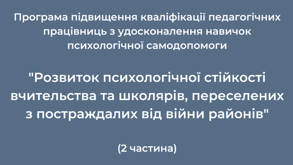 Програма підвищення кваліфікації педагогічних працівниць з удосконалення навичок психологічної допомоги за програмою “Діти і війна.Техніки зцілення.”