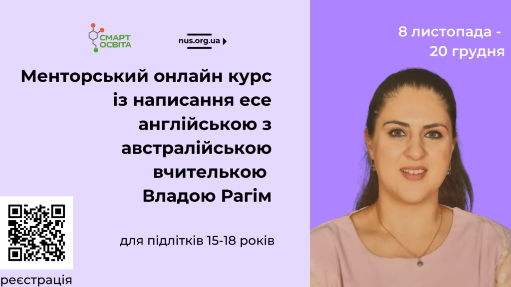 Написання аргументованих есе і отримання зворотного зв’язку від Влади – поради щодо структури есе, використання більш влучних висловів англійською, перефразування тощо. Учасники зможуть працювати над есе у своєму власному темпі та в зручний для них час.