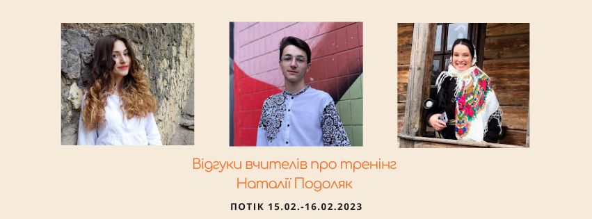 Щиро дякую Наталі Подоляк за її роботу та такий цікавий тренінг. Для мене вдвічі складніше, ніж для досвідчених вчителів, є вчителювання під час війни. Я працюю в школі перший рік, це вже є стресова ситуація, багато дітей та обов’язків, підготовка до уроків, постійні тривоги, що заважають навчанню. До того ж я сама тікала від війни з Маріуполя, тому, як ніхто інший, знаю, наскільки це страшно та важко і як може травмувати.