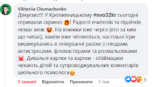 Наразі стартувала пілотна версія проєкту. Перші 15 шкіл тестують склад скринь, а «Смарт освіта» — аналізує потреби та за необхідності вносить зміни до наповнення наступних партій.