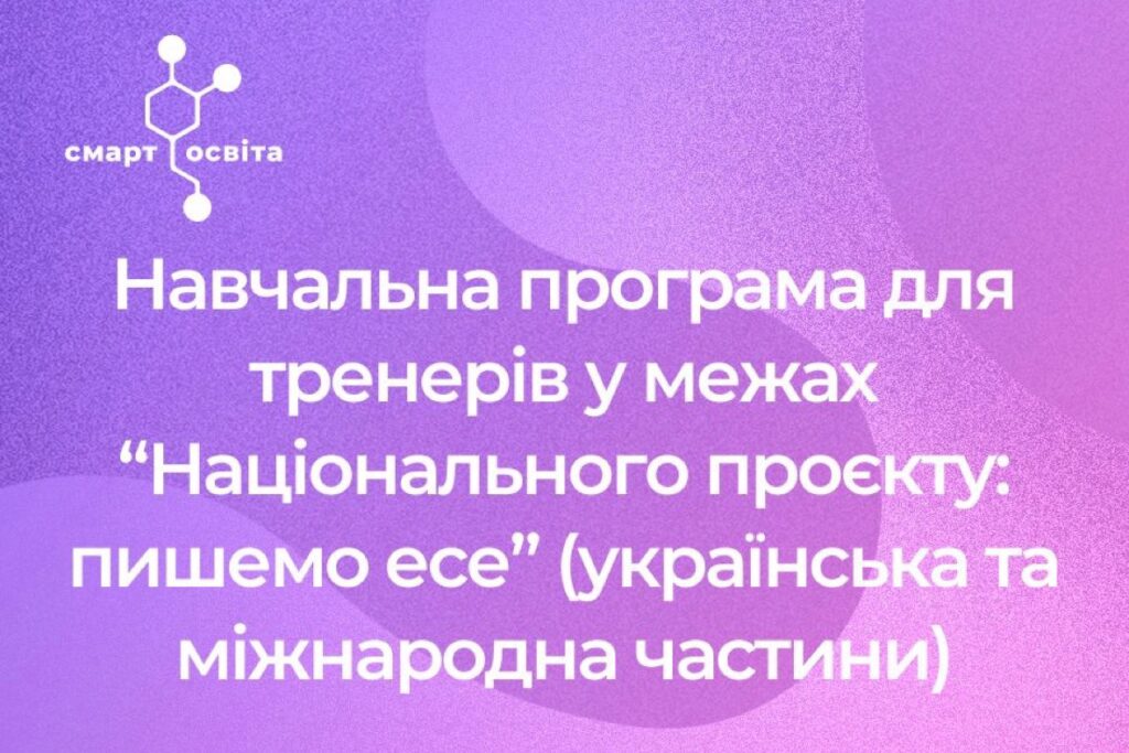 У медах проєкту “Національний проєкт: пишемо есе”, запущеного ГО “Смарт освіта” у 2021 році, відібрано 24 учасників (вчителів-методистів, викладачів педагогічних вишів та ІППО), які пройшли навчання у провідних українських та американських тренерів. Результатом стало створення методичних посібників і навчальних модулів з написання есе.