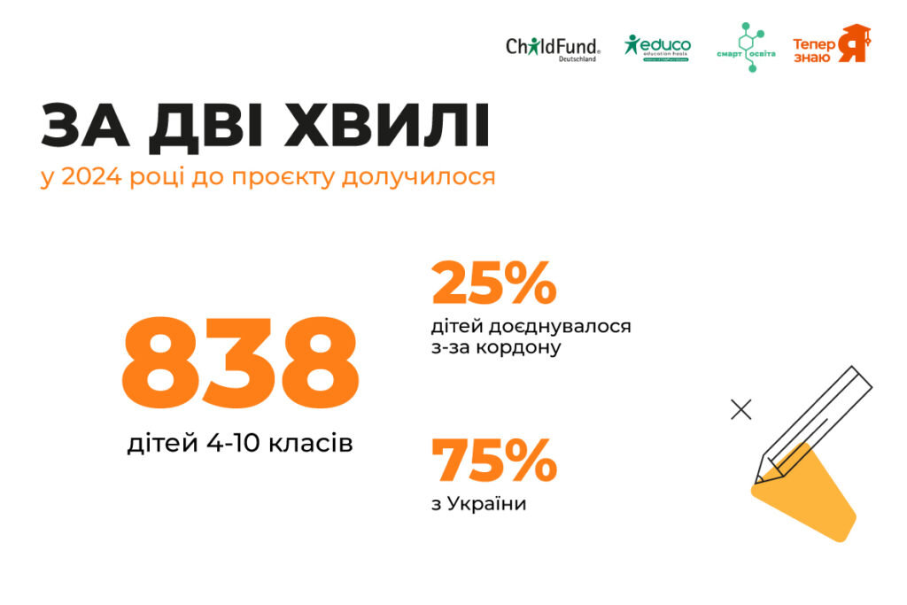 Літній п’ятитижневий курс «Тепер я знаю» відбувається вже втретє і за дві хвилі цьогорічної ітерації охопив 838 дітей 4-10 класів, більшість із яких (близько 75%) зараз в Україні. Усього школярі та школярки пропрацювали по 20 уроків з математики та української мови. Заняття містили тести та різнопланові завдання, а отримані знання діти могли випробувати на уроках-практикумах.