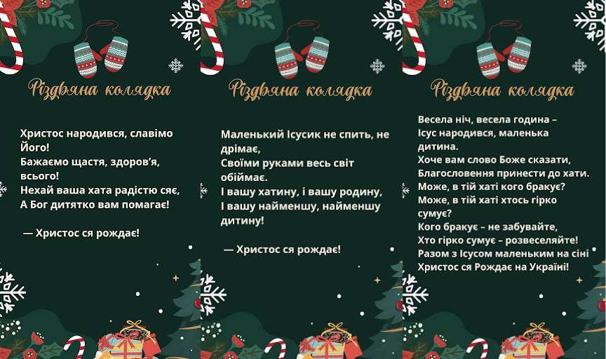 Ось такі колядки команда «Залишаємось з Україною» пропонує вивчити учням та ученицям: