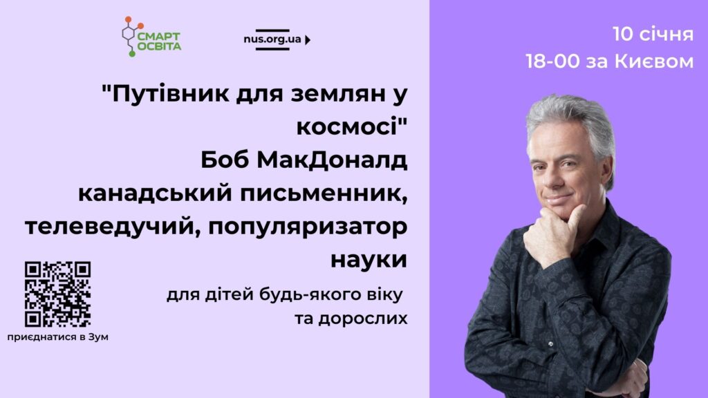 Сьогодні о 18.00 ГО “Смарт Освіта” організовує зустріч з канадським письменником та телеведучим Бобом МакДоналдом.