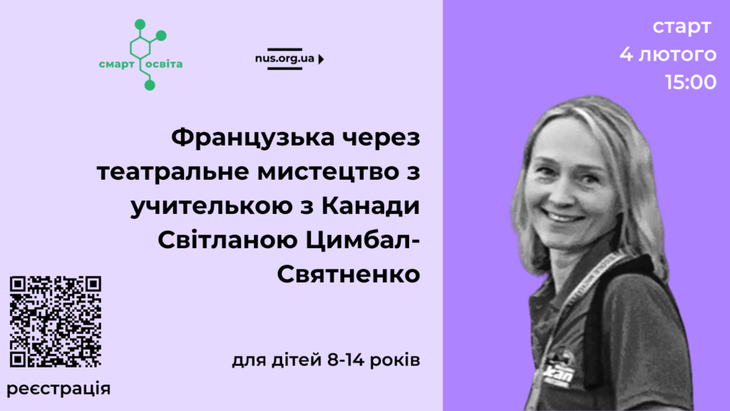 Мріяли спробувати себе в акторській майстерності? ГО “Смарт освіта” запрошує школярів і школярок від 8 до 14 років на онлайн-заняття, де ви зможете вивчати французьку мову завдяки театральному мистецтву.