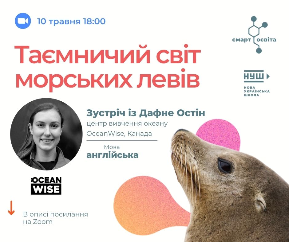 Нумо досліджувати світ морських левів разом! Що вони їдять, як пересуваються, про що розкаже дослідження їхніх екскрементів? Приєднуйтеся до онлайн-зустрічі з канадською океанологинею Дафною Остін та запитайте все, що хотіли знати про морських левів!