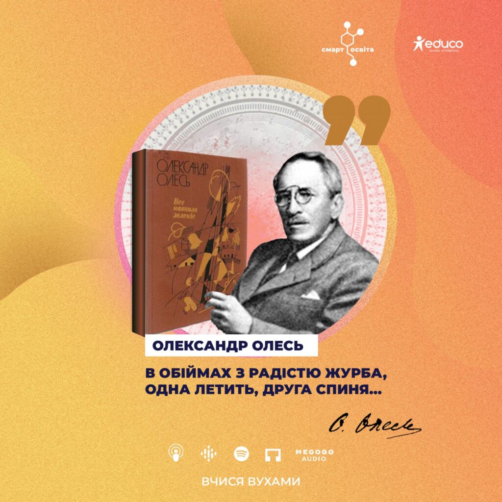 Олександр Олесь (справжнє ім’я – Олександр Петрович Кандиба) – це відомий український письменник, поет, драматург і громадський діяч. Учителька української мови та літератури Олена Саєнко у новому аудіоуроці розповість про інфлюенсера початку ХХ століття. Ви дізнаєтесь, яку книжку прочитав автор першою, скільки він знав мов та що стало наслідком його рішення писати лише українською. Чому Олександр Кандиба був змушений виїхати за кордон та що йому довелося пережити? Як повпливала доля батька на його сина? Також розберемо твір “З журбою радість обнялась” та розберемося, як майстерно автор використовує художні засоби та що він хоче сказати поміж рядків.
