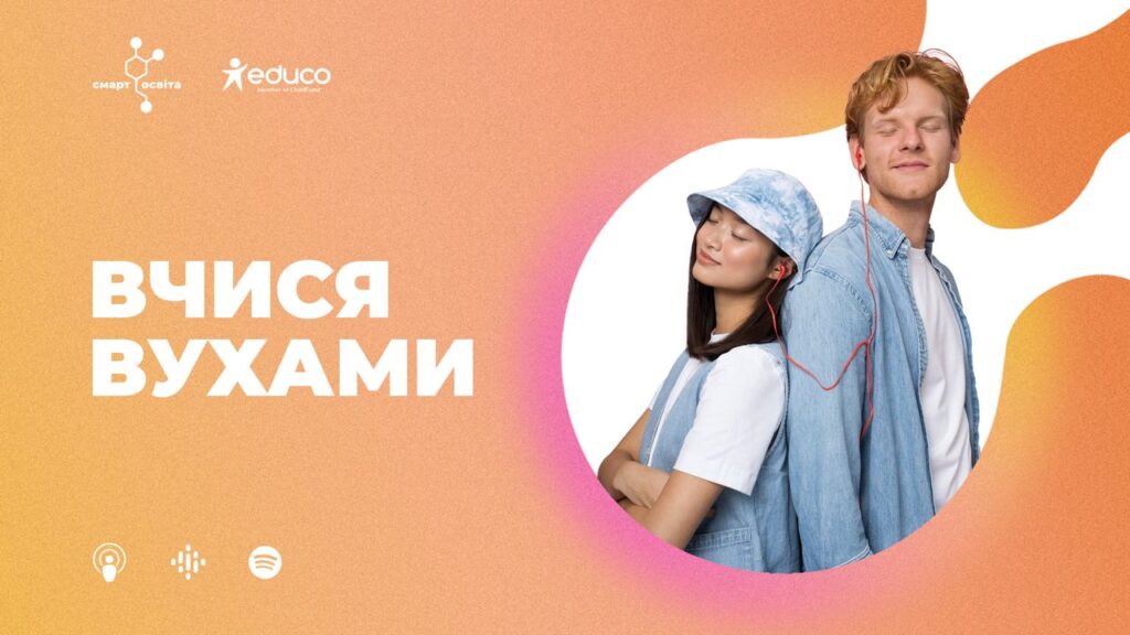 “Вчися вухами” — це безоплатні аудіоуроки з української мови, літератури та історії України для учнів 8–11 класів. Проєкт “Вчися вухами” здійснює ГО “Смарт освіта” за підтримки Educo Foundation. У майбутньому школярі зможуть прослухати уроки зі всесвітньої історії та громадянської освіти. У серії уроків з української літератури талановиті вчителі не просто аналізують твори, а й залучають слухача до процесу, використовують найцікавіші та найновіші приклади.