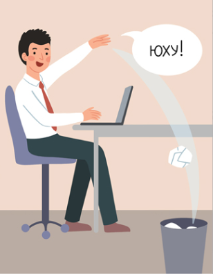 Сидите в офісі й відчуваєте, що ваш ресурс вас поволі покидає? Але ж до кінця робочого дня ще стільки часу! Зробіть паузу – зіжмакайте папір та киньте його в кошик для сміття з якимось переможним вигуком. Так ви зможете “увімкнути тілесність”, переключитися з мозкової активності на фізичну. А ще можна уявляти, як ви екологічно утилізуєте усі свої негативні емоції, стрес та втому, викидаючи їх в кошик, як використаний папір.