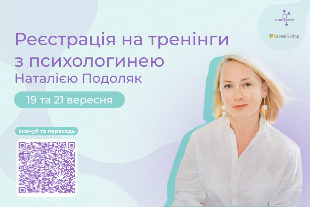 Тренінгова програма з Наталією Подоляк передбачає теоретичний та практичний блоки для різних груп освітян. Заняття сприяють формуванню в освітян знань про психологічну травматологію, а також надають конкретні техніки й методики для зменшення стресу й емоційної напруги.