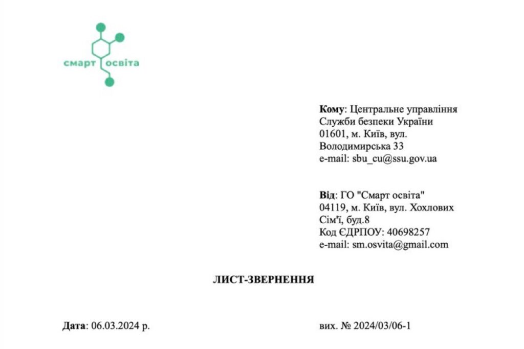 Сьогодні ГО «Смарт освіта» подала заяви до Служби безпеки України, Національної поліції та Державного бюро розслідувань.