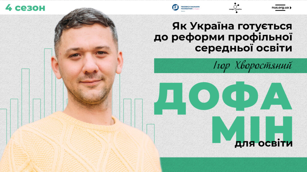 Четвертий сезон «Дофаміну для освіти» розпочинаємо з теми важливої для сьогодення в освіті – «Як Україна готується до реформи профільної середньої освіти» разом з Ігорем Хворостяним, генеральним директором директорату шкільної освіти Міністерства освіти і науки України.