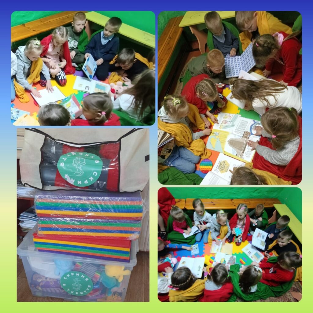 Проєкт «Скриня в укриття» наша організація ініціювала минулого року, коли зрозуміла, що діти проводять в укриттях дуже багато часу. Не всі школи можуть забезпечити продовження навчання в бомбосховищі та влаштувати там дозвілля — відвернути увагу від стресу й тривоги.