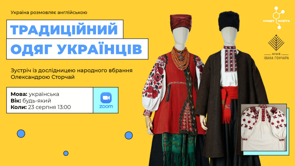 Традиційний одяг – це саме те, що допомагає уособити й поєднати в собі особливості та відбиток життя жителів різних регіонів України. На зустрічі із дослідницею народного вбрання Олександрою Сторчай ви дізнаєтеся про одяг, який був характерний Середній Наддніпрянщині – Київщині кінця 19 – початку 20 століття – чим він особливий та які відмінності від інших регіонів зберігає в собі.