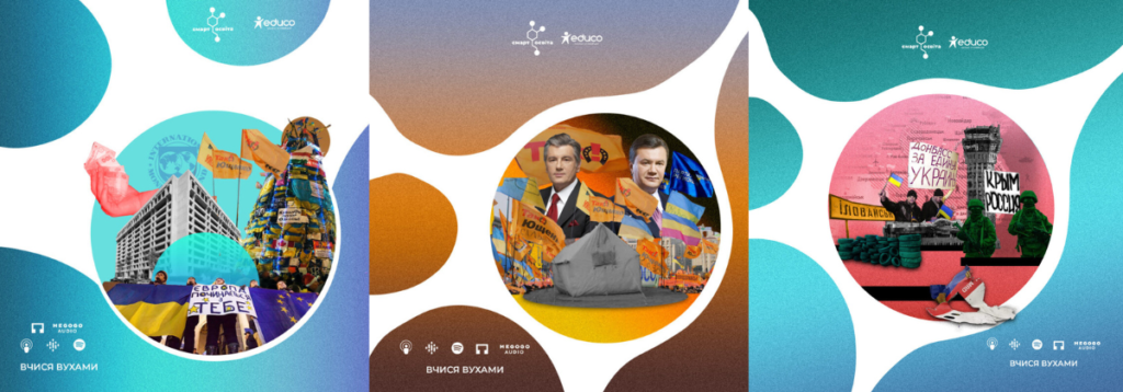 Для середніх та старших класів доступна добірка аудіоуроків, які розказують історію Помаранчевої революції та Революції Гідності: