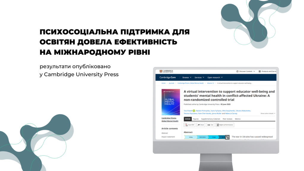 Психосоціальна підтримка для освітян Смарт Освіти довела ефективність на міжнародному рівні: результати опубліковано у Cambridge University Press